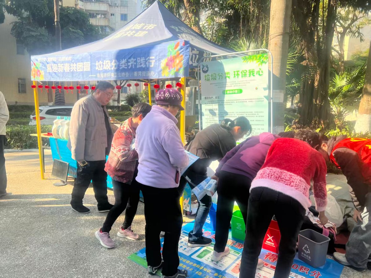 为助力小区垃圾分类常态化宣传,提升居民关注度,1月1日-3日,市环境卫生协会联合香湾街道,以“喜迎新春共团圆垃圾分类齐践行”为主题,在每一间、美丽湾、好景花园、碧涛花园四小区同步开展活动。活动通过“知识闯关+大奖激励+家庭互动”模式,累计发放宣传手册700余份,吸引400余名居民参与,回收废旧物资1300公斤,为新年注入“绿色能量”。