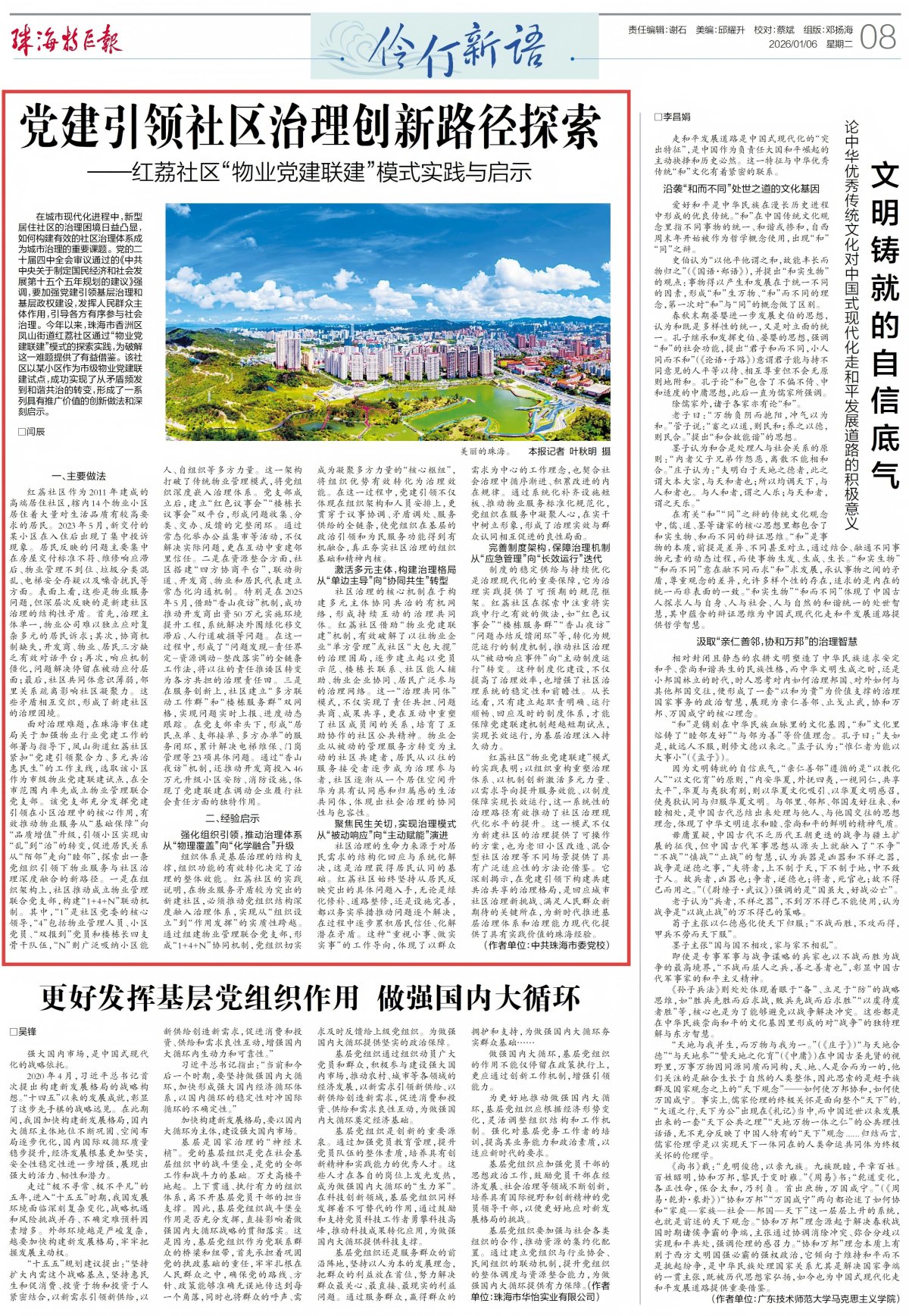 在城市现代化进程中,新型居住社区的治理困境日益凸显,如何构建有效的社区治理体系成为城市治理的重要课题。党的二十届四中全会审议通过的《中共中央关于制定国民经济和社会发展第十五个五年规划的建议》强调,要加强党建引领基层治理和基层政权建设,发挥人民群众主体作用,引导各方有序参与社会治理。今年以来,珠海市香洲区凤山街道红荔社区通过“物业党建联建”模式的探索实践,为破解这一难题提供了有益借鉴。该社区以某小区作为市级物业党建联建试点,成功实现了从矛盾频发到和谐共治的转变,形成了一系列具有推广价值的创新做法和深刻启示。
