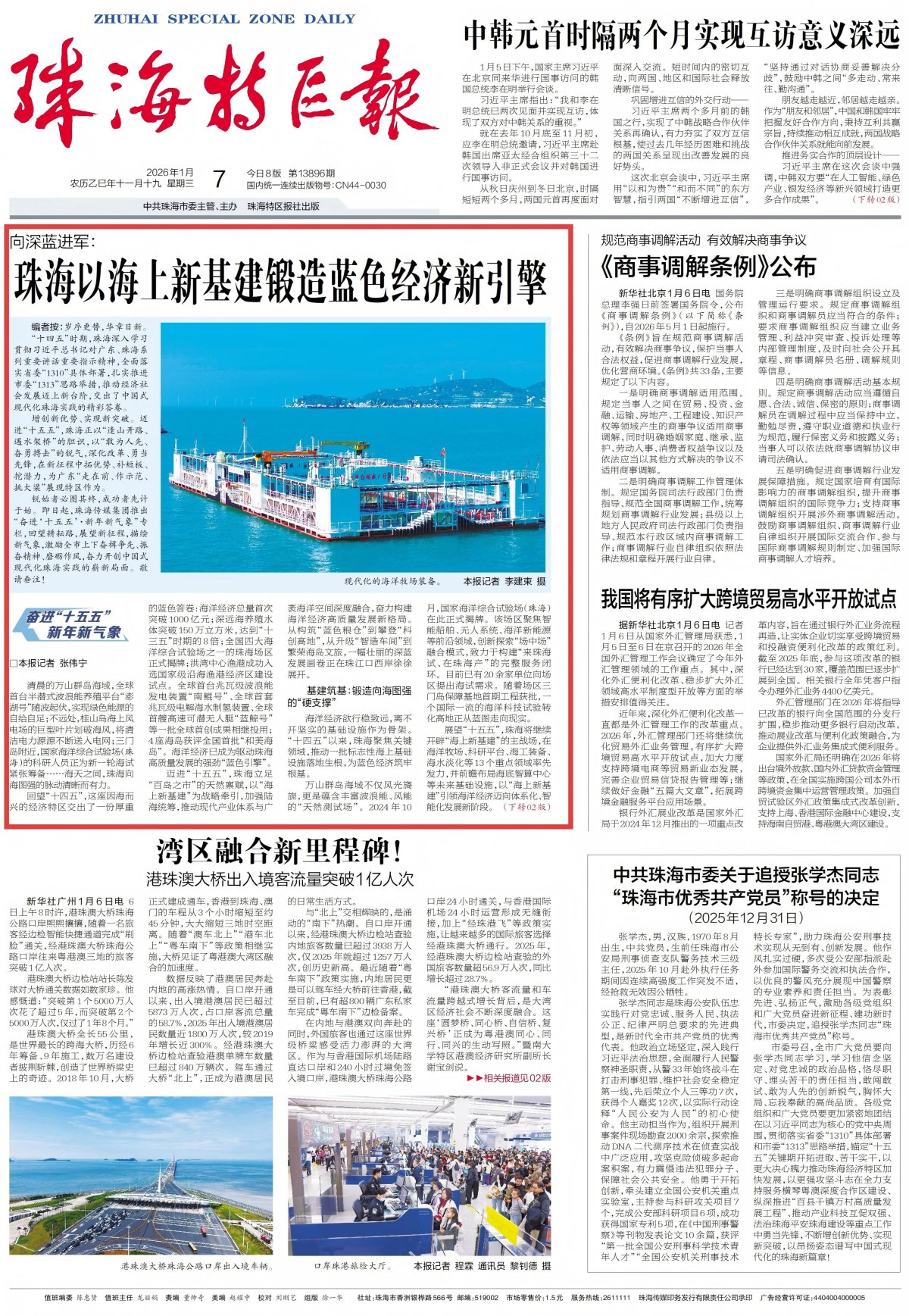 增创新优势、实现新突破。迈进“十五五”,珠海正以“逢山开路、遇水架桥”的胆识,以“敢为人先、奋勇搏击”的锐气,深化改革、勇当先锋,在新征程中拓优势、补短板、挖潜力,为广东“走在前、作示范、挑大梁”展现特区作为。