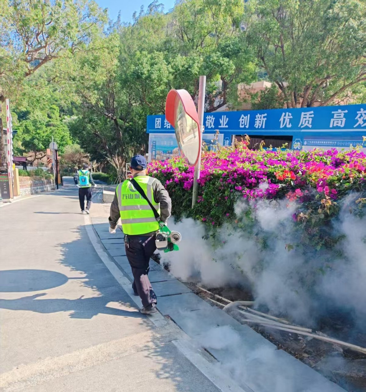 针对前期排查出的3处卫生死角,专业消杀人员采用“超低容量喷雾+滞留式喷洒”方式,对墙角、植被底层、排水沟渠等区域实施药物消杀,减少越冬蚊虫潜在孳生环境。