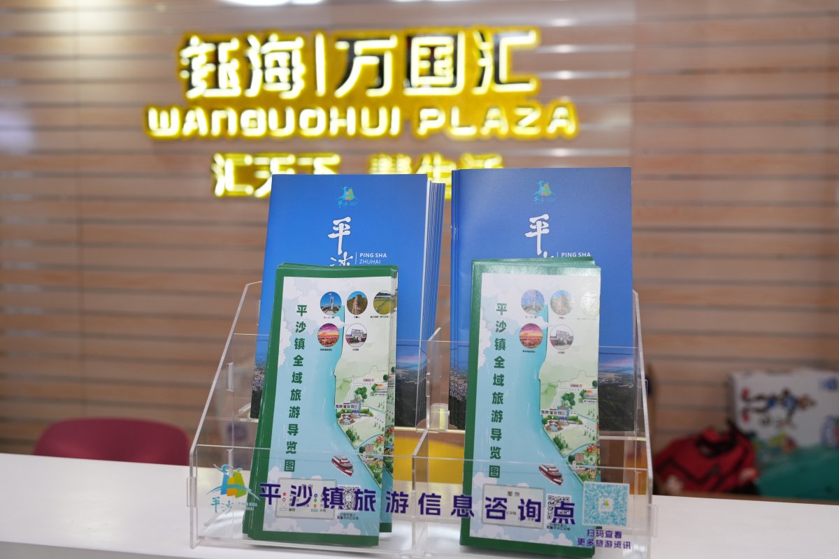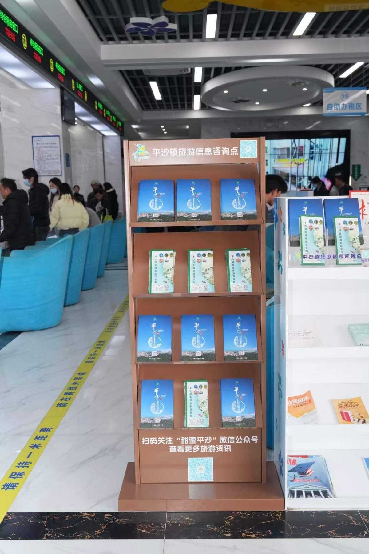 走进平沙镇党群服务中心,一本本精美的平沙镇宣传旅游手册、小巧便携的地图折页,整齐摆放在写有“平沙镇旅游信息咨询点”的崭新展架上。在钰海·万国汇购物广场(平沙店)北门入口处,除了展架,墙壁上还悬挂着一幅平沙镇全域旅游导览图。