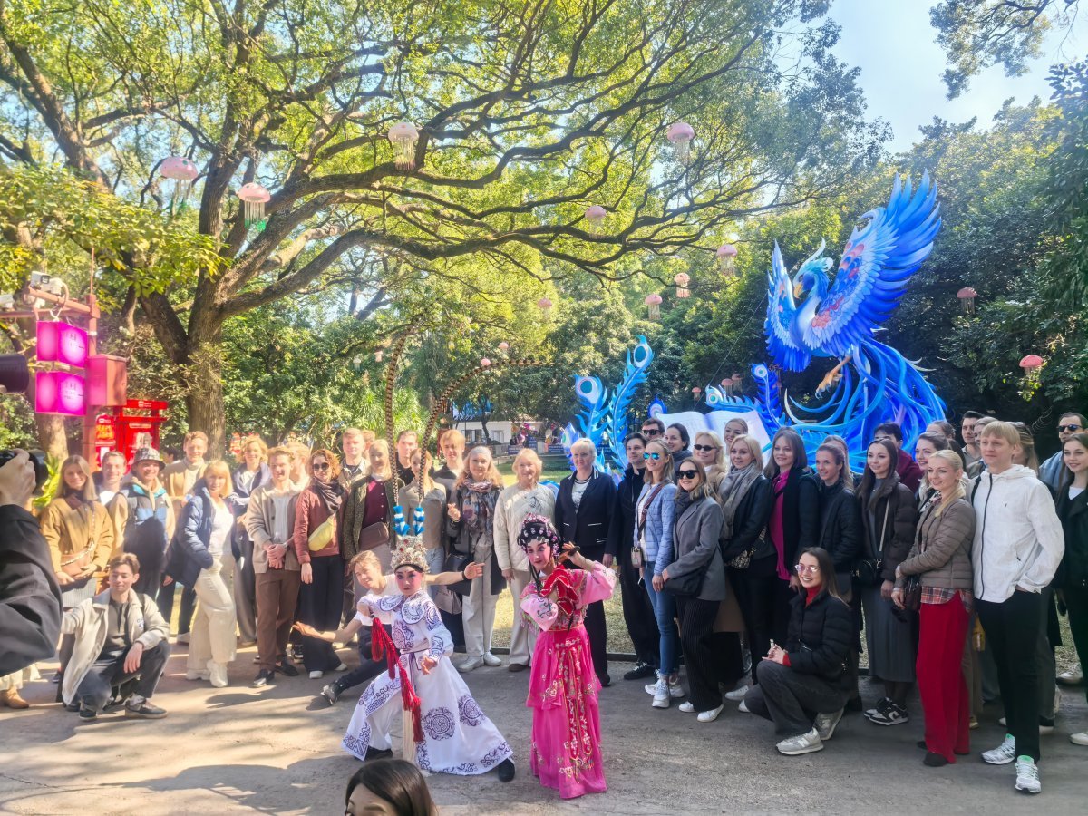 尤其令人印象深刻的是艺术家们与珠海本地粤剧小演员的温馨互动。当身着传统戏服的孩子们演绎起经典粤剧片段时,俄罗斯舞者们驻足凝神,近距离观赏这项世界非物质文化遗产的独特韵味,并在互动中传递出对彼此艺术的尊重与欣赏。随后,在唐家古镇的街巷与唐家湾乡思馆的灯笼墙前,他们用镜头记录下中西文化交融的生动瞬间。
