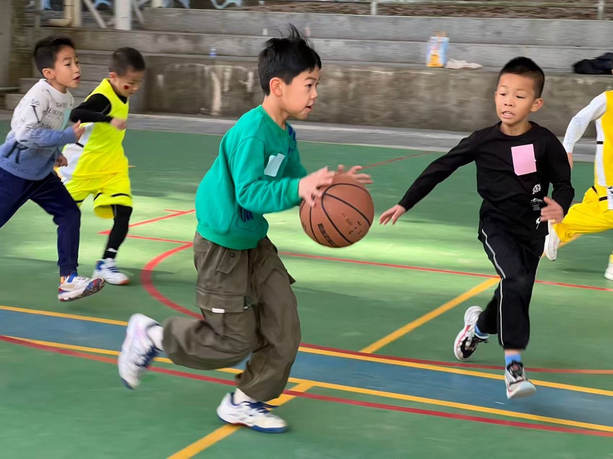 亲子趣味环节中,“巨人投篮”的警戒线前,不同年龄段的孩子轮番上阵,小个子学员踮脚投球时脸蛋涨得通红,稍大些的孩子则稳稳瞄准篮筐;身旁的家长们或弯腰递球,或轻声指导,有人投中后和孩子击掌欢呼,有人失误了便笑着鼓励再来一次。“合力建塔”现场暖意融融,家长和孩子眼神同步锁定积木,相互呼应,每成功叠起一块积木,队伍里就会响起一阵雀跃的欢呼。随后的学员篮球对抗赛上,小球员们攻防有序、配合默契,奔跑的身影里藏着对篮球的热爱,场边的家长举着手机记录,眼中满是骄傲。