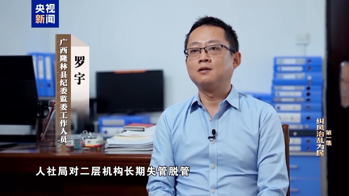 广西隆林县纪委监委工作人员罗宇:人社局对二层机构长期失管脱管,没有专人去对业务办理资金发放这些进行监督审计,她们的权限太大了,没有人进行监管,所以就造成了这两个人在办理养老业务过程中长期脱管的状态。