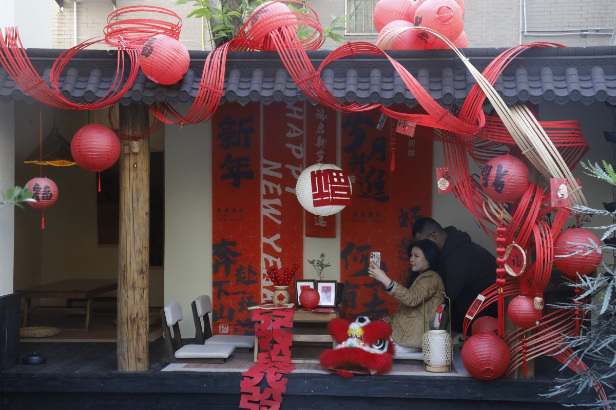狮山叙前身是狮山记忆展览馆,在保留老建筑肌理的基础上,梁晓博打通六间相连的小屋,融入复古与国潮设计风格,让历史展览与商业空间巧妙融合。“白天喝茶的客人能顺道看展,晚上这里变身演出场地,大家可以喝酒、听相声,老建筑的价值就这样被真正激活了。”