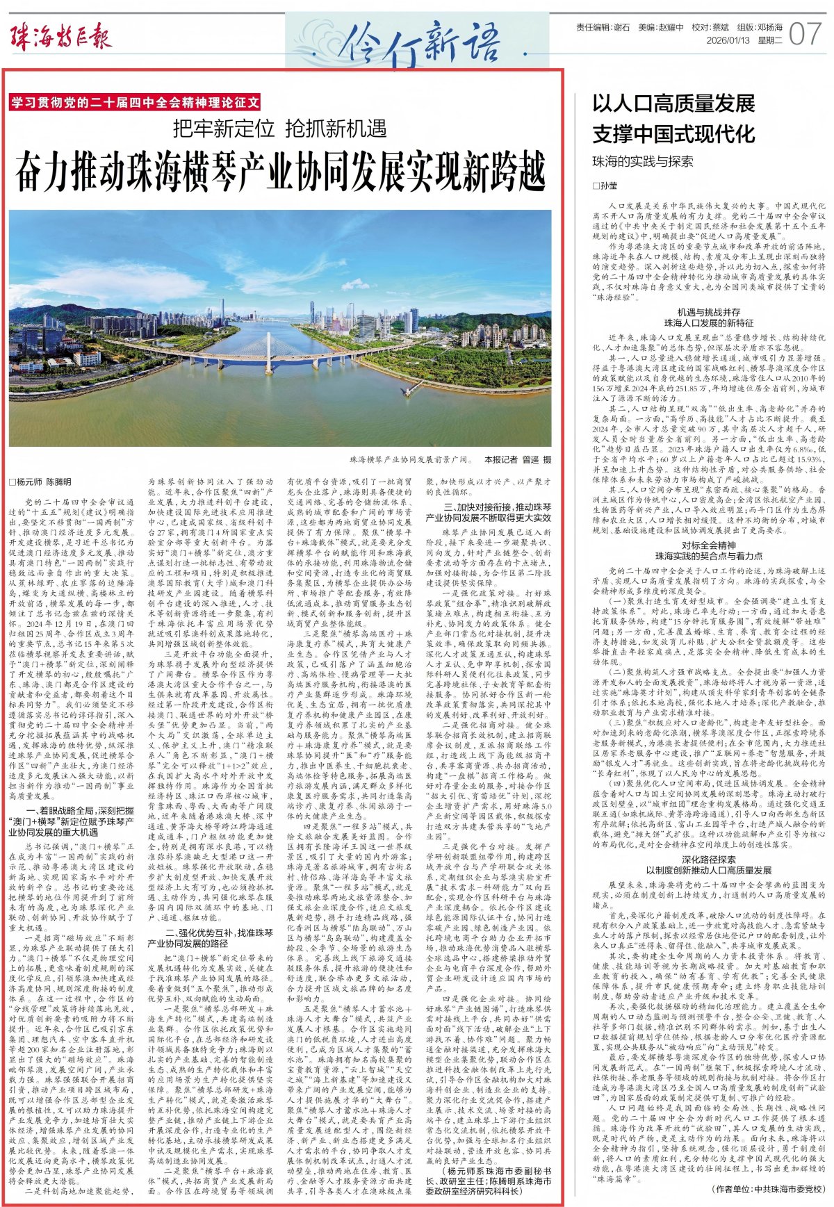 一、着眼战略全局,深刻把握“澳门+横琴”新定位赋予珠琴产业协同发展的重大机遇