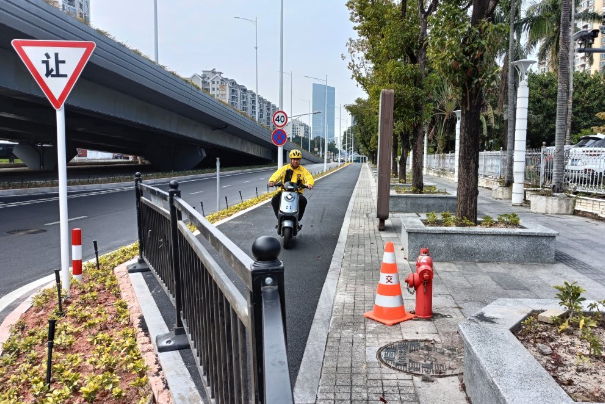 此前,该非机动车道因未设置防护设施,断头处与机动车道相交,行人和骑手通行时需警惕冲至路面的风险,非机动车道安全隐患重重,一旦发生交通事故,后果不堪设想。而相关问题经媒体报道后,施工单位于1月11日对设施进行了升级改造,撤掉原有的临时铁马,替换为永久性铁质护栏,并同步增设明显的导流警示标识,安全隐患消除了,过往行人与骑手的出行安全得到有效保障。