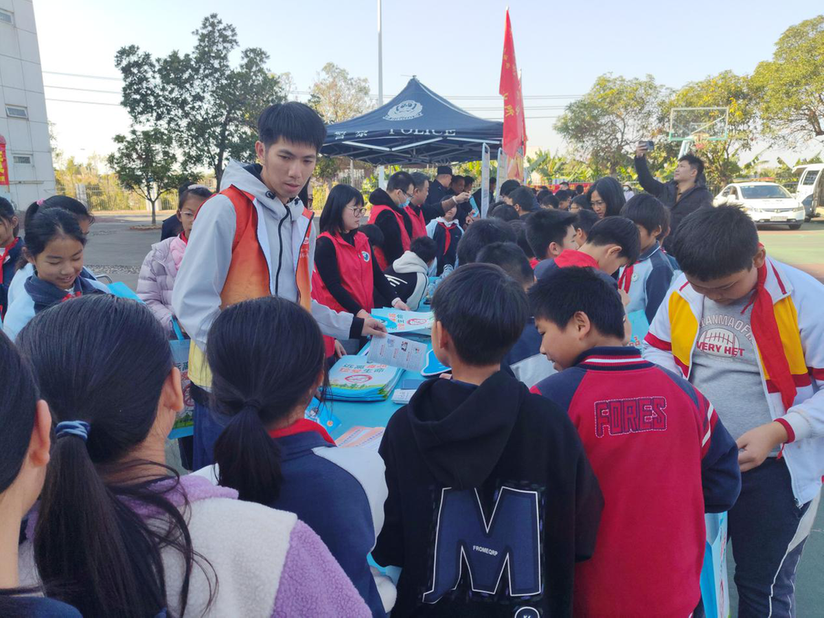 活动最后,工作人员向同学和老师们发放法治宣传资料并进行简要讲解,使宣传资料发挥“精准滴灌”的实效。派发的民法典简易读本,以漫画案例形式阐释民事权利,为家庭提供生活法律指引;未成年人保护法与预防未成年人犯罪法宣传折页,系统梳理了家庭、学校、社会、网络、政府、司法“六大保护”内涵与预防犯罪层级措施,助力家长和青少年共同筑牢成长防线;防诈骗手册则结合近期高发案例,揭秘针对学生群体的网络游戏诈骗、追星诈骗等新套路,提升全家老少的识骗防骗能力。特别是精心编印的“法律明白纸”,以问答形式直击日常高频法律问题,语言通俗,一目了然,成为大家争相取阅的“热门读物”。此次累计派发的200余份法治宣传资料,犹如一份份“法治大礼包”,将专业的法律知识转化为通俗易懂的实用工具,有效延伸了宣传触角,切实提升了普法的针对性和获得感。