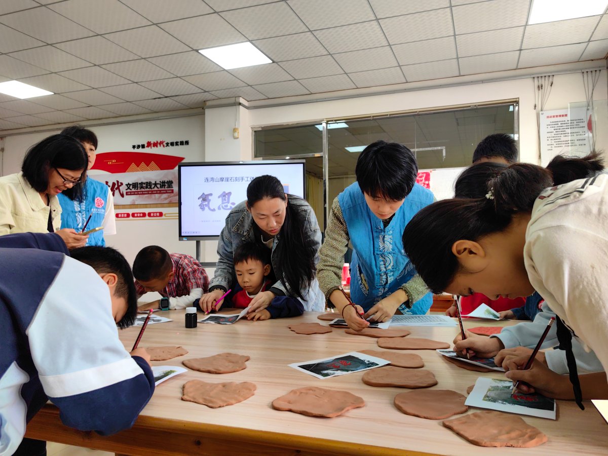 平沙镇新时代文明实践所举办“山海印记·巧手承古”连湾摩崖文物体验工坊,让历史文化以更亲切的方式走进群众生活,深化亲子家庭对平沙文化的认同与传承。
