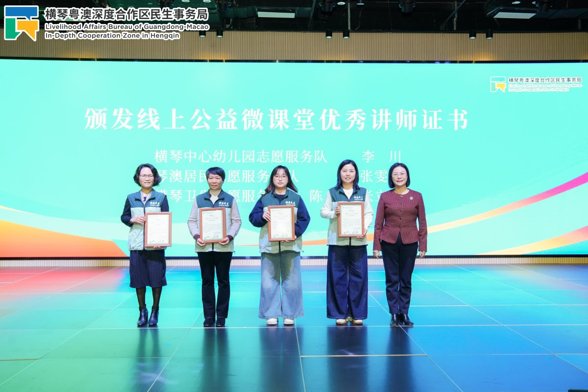 活动现场,主办方嘉许了2025年横琴民生志愿者队伍中的48名星级志愿者和10支优秀志愿服务分队,其中包括15名来自澳门的志愿者及3支澳门志愿服务分队。活动还特别新设了“十五运会城市志愿服务恪勤之星”和“线上公益微课堂优秀讲师”两项荣誉,由8位全运会城市志愿者和4位在教育、文体、卫健等领域的专业志愿者获得上述殊荣。