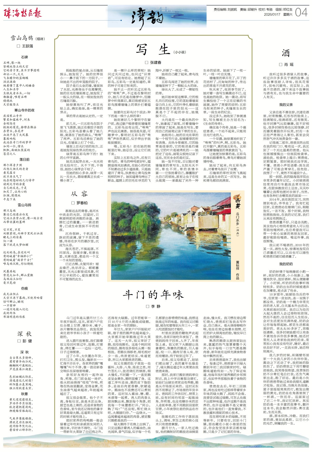 秋天来了,收获季节到了。她对着一沓写生稿激动不已,这也是她的收获。她一激动,将写生稿投给了一个正在征稿的书画展,她作了简要的说明:五彩鸟衔来的种子,夹缝里生长的草,一段生命的纪实。