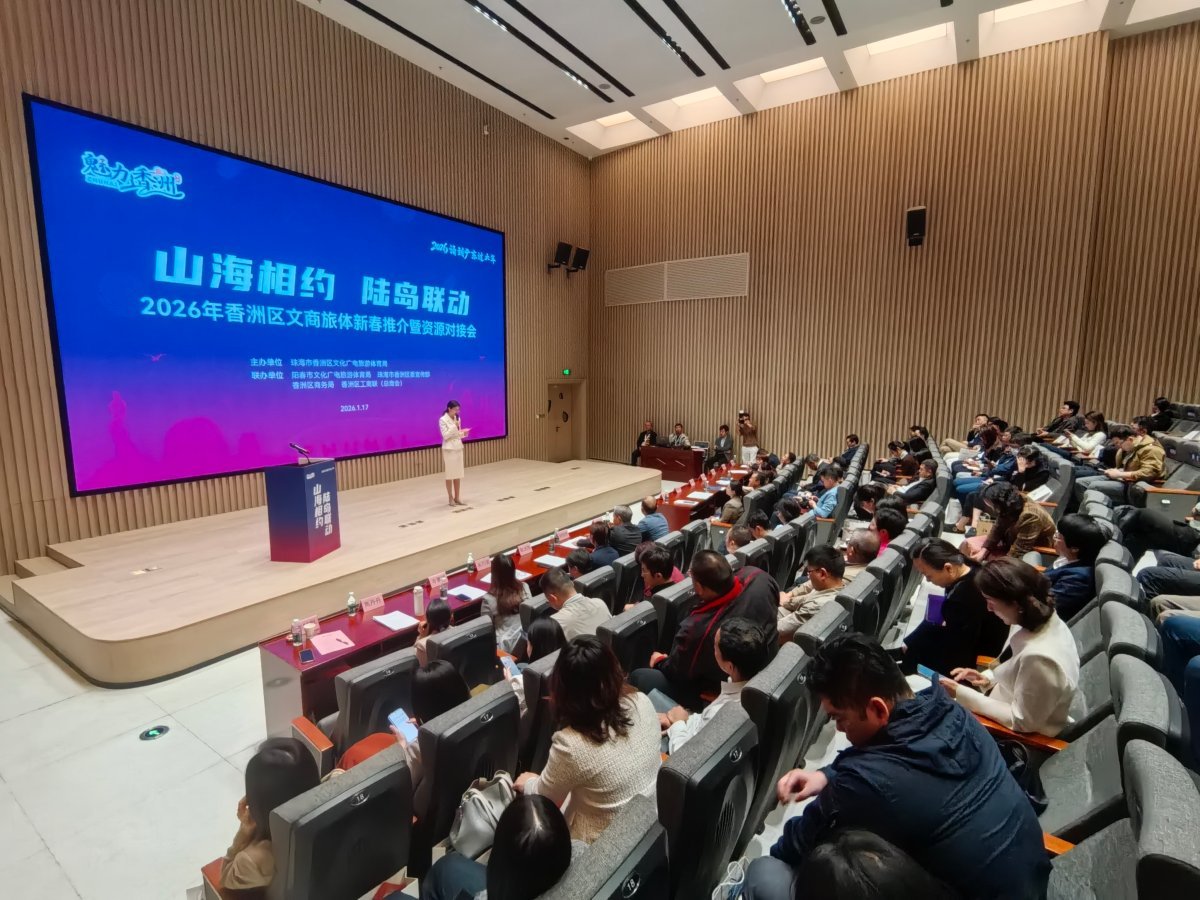 为抢抓2026“请到广东过大年”的文旅消费机遇,1月17日,香洲区文化广电旅游体育局携手阳春市文化广电旅游体育局,开展2026年文商旅体新春推介暨资源对接会,通过推介两地春节文旅特色资源与“香洲年味”系列活动,为深化区域文旅协作架起高效沟通的桥梁。据悉,本次推介会旨在搭建一个开放共享的舞台,集中展示两地文商旅体资源、新春活动安排及消费利好政策,助力文商旅体融合发展。
