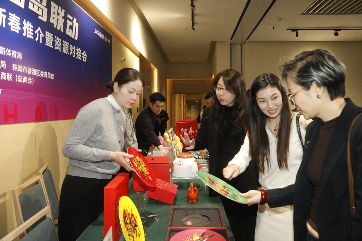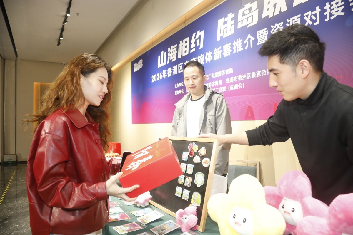 推介会现场,九洲航海、英迪格酒店、万雪汇等知名文旅企业纷纷亮相,集中展示各具特色的产品与服务。活动还特别设置文创展区,精心陈列的“香洲礼”手信礼品、“留贝”珠宝艺术品及“观瓷”马年主题文创产品吸引众多目光,为参会企业代表搭建起深度交流、洽谈合作的平台。