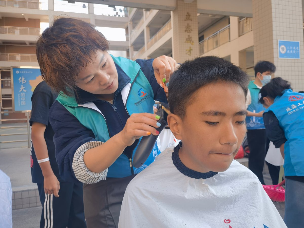 活动当天,临时剪发区内秩序井然,技艺娴熟的志愿者理发师们,耐心询问每位师生的发型需求,为他们进行量身定制的细致修剪。剪发间隙,西藏班的老师与同学们亲切交谈,聊聊学习进度、谈谈家乡趣事,志愿者们分享了珠海的风土人情,现场欢声笑语不断,俨然一幅“民族团结一家亲”的温馨画卷。