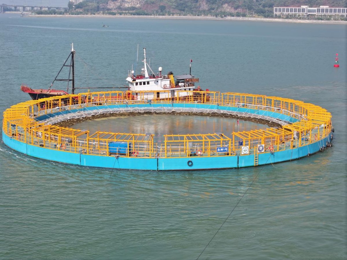 该平台已获得发明专利授权,并已完成中国船级社新技术应用认证相关准备。投用后,将用于养殖金鲳鱼、石斑鱼等经济鱼类,预计稳定运营期年产量可达150吨。