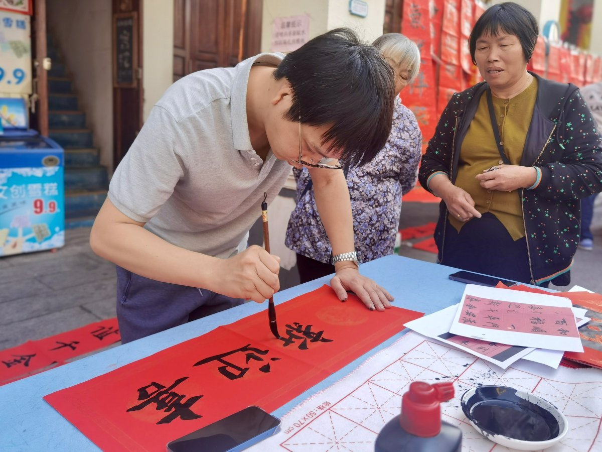 春节渐近,为丰富乡村精神文化生活,1月19日,斗门区斗门镇联合广东科学技术职业学院在斗门旧街开展“情暖乡村·新春送福”写春联送祝福活动,以笔墨为媒传递新春问候,为村民送上满载文化暖意与美好期许的“新年厚礼”,让年味在“百千万工程”的图景中愈发浓郁。