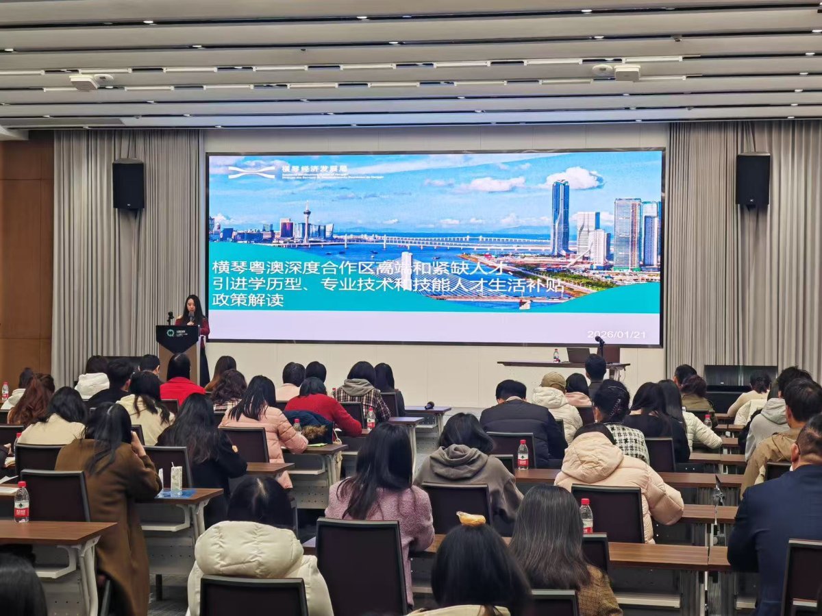 1月21日,横琴粤澳深度合作区经济发展局在横琴市民服务中心举办高端和紧缺人才及生活补贴政策宣讲会,吸引约150名合作区重点企业代表参会。活动通过精准的政策解读与现场互动答疑,帮助企业准确理解和运用政策红利,加快推动合作区高端和紧缺人才及生活补贴政策的申报工作进度。