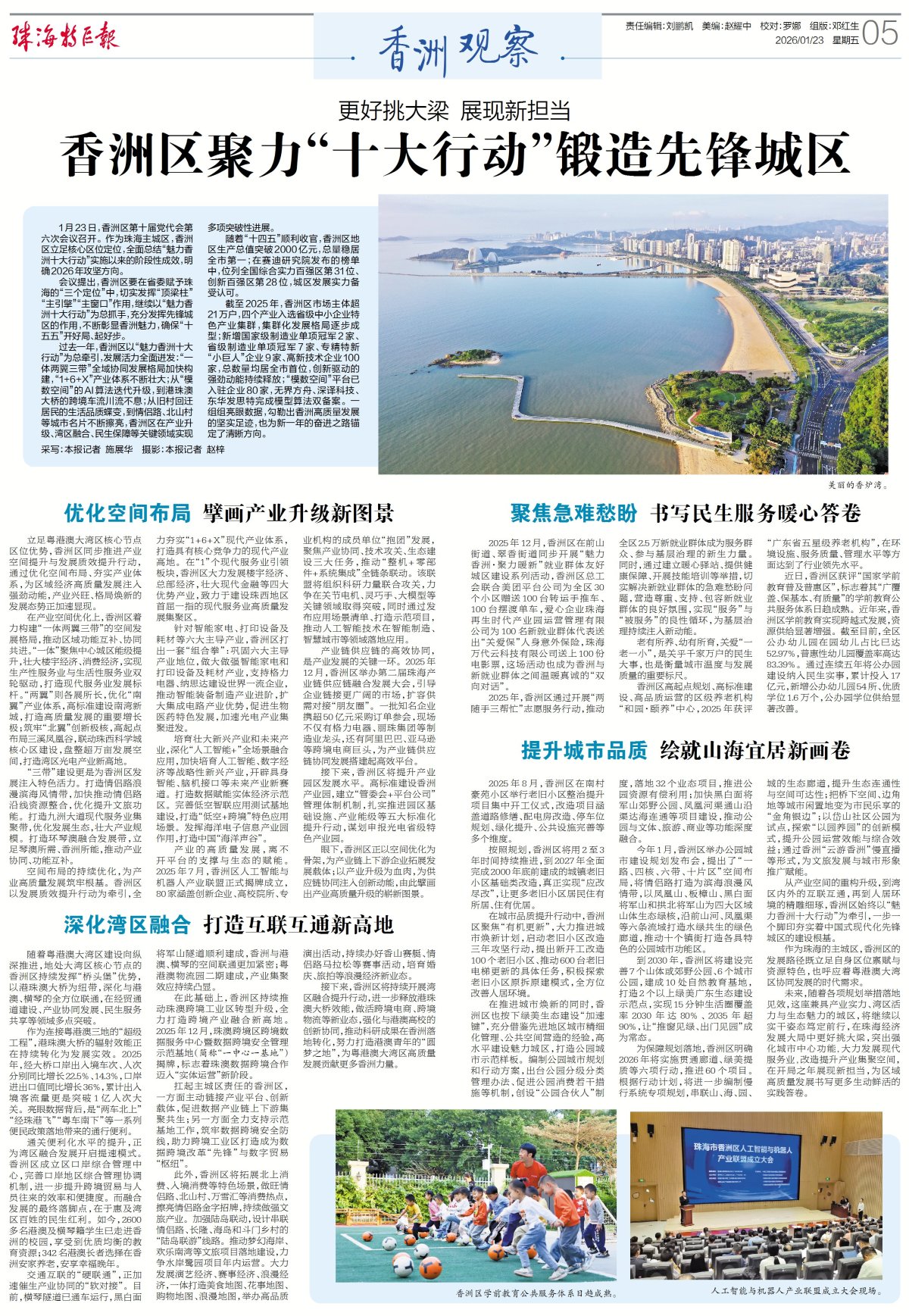 从产业空间的重构升级,到湾区内外的互联互通,再到人居环境的精雕细琢,香洲区始终以“魅力香洲十大行动”为牵引,一步一个脚印夯实着中国式现代化先锋城区的建设根基。