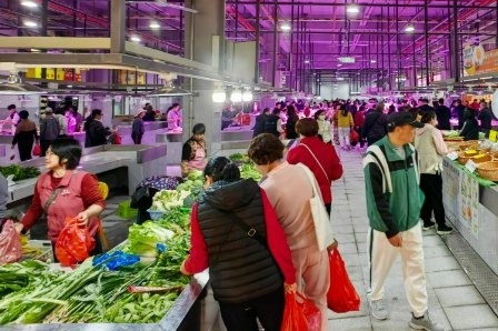 当天上午9点,记者走进这家生鲜农产品超市,货架旁挤满了挑选食材的顾客,货架上产品琳琅满目,从肉禽蛋奶、粮油米面到时令蔬果、干货调料、再到现场加工的特色美食、面包烘焙,一应俱全。“之前买菜要跑1公里外的超市,现在下楼就能买到新鲜便宜的菜。”住在附近权英豪苑小区的居民李阿姨一边挑选青菜一边笑着说。