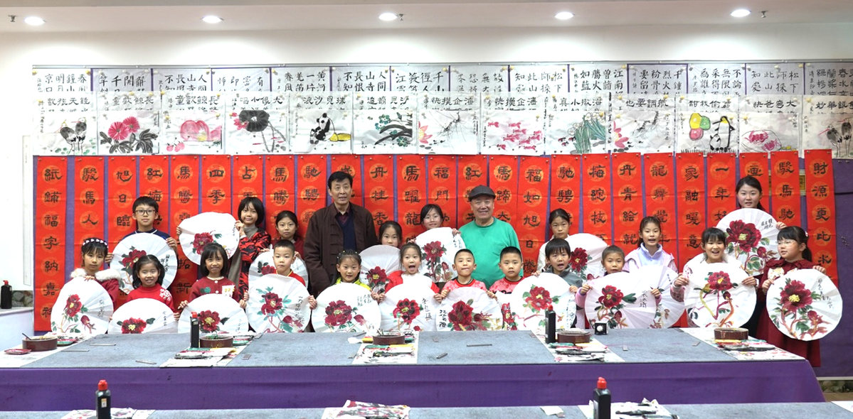王树嘉老师1956年生于辽宁本溪,深耕国画60载,早年师从苏寿同、冯大中等名家,作品兼具传统功底与时代意趣,山水气势恢宏、花鸟灵动鲜活,深受业界与大众喜爱。此次特意以寓意吉祥的牡丹授课,既贴合新春氛围,更意在为孩子们播下传承传统文化的种子。