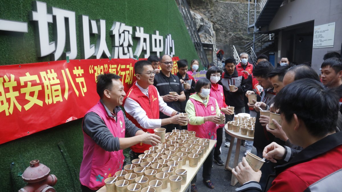 1月26日,正值腊八时节,为增进社区邻里情谊,拱北街道联安社区党委、联安社区退役军人服务站联合顺丰速运珠海党支部拱北片区、拱北街道外卖配送员流动党员党支部,携手爱心企业雨花斋素食馆,在辖区开展第三届腊八节“粥”福暖新共建行动,为快递员、外卖员、网约司机、环卫工人、高龄长者等群体送上600余份热气腾腾的腊八粥,传递冬日温情。