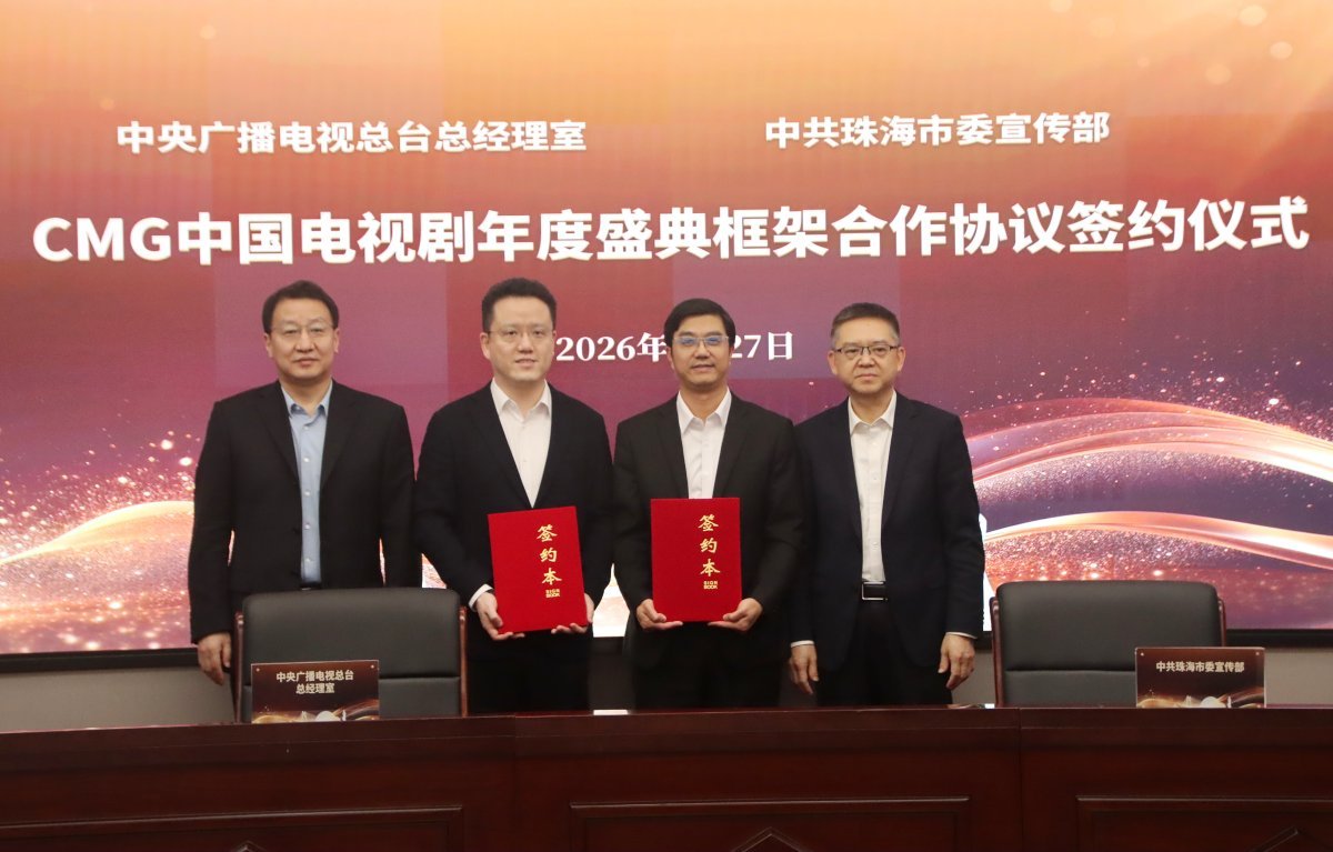 1月27日,CMG中国电视剧年度盛典框架合作协议签约仪式举行。中央广播电视总台影视剧纪录片中心党委副书记、副召集人夏晓辉,中共珠海市委常委、宣传部部长徐剑出席仪式。