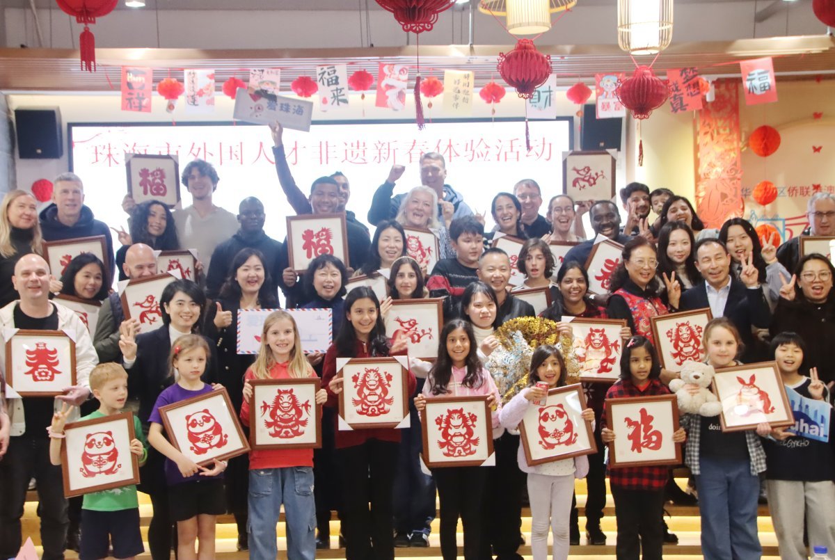 新春将至,年味渐浓,一场别开生面的非遗新春体验活动在华发社区新时代文明实践站举行。1月31日,珠海市科技创新局、珠海市外事局联合香洲区南屏镇委、镇政府举办“骏马启新·艺享中华——珠海市外国人才非遗新春体验”活动。来自珠海各行业的50余名外国人才及家属欢聚一堂,一同剪窗花、印年画、写春联、编中国结,体验中国非遗文化的魅力。