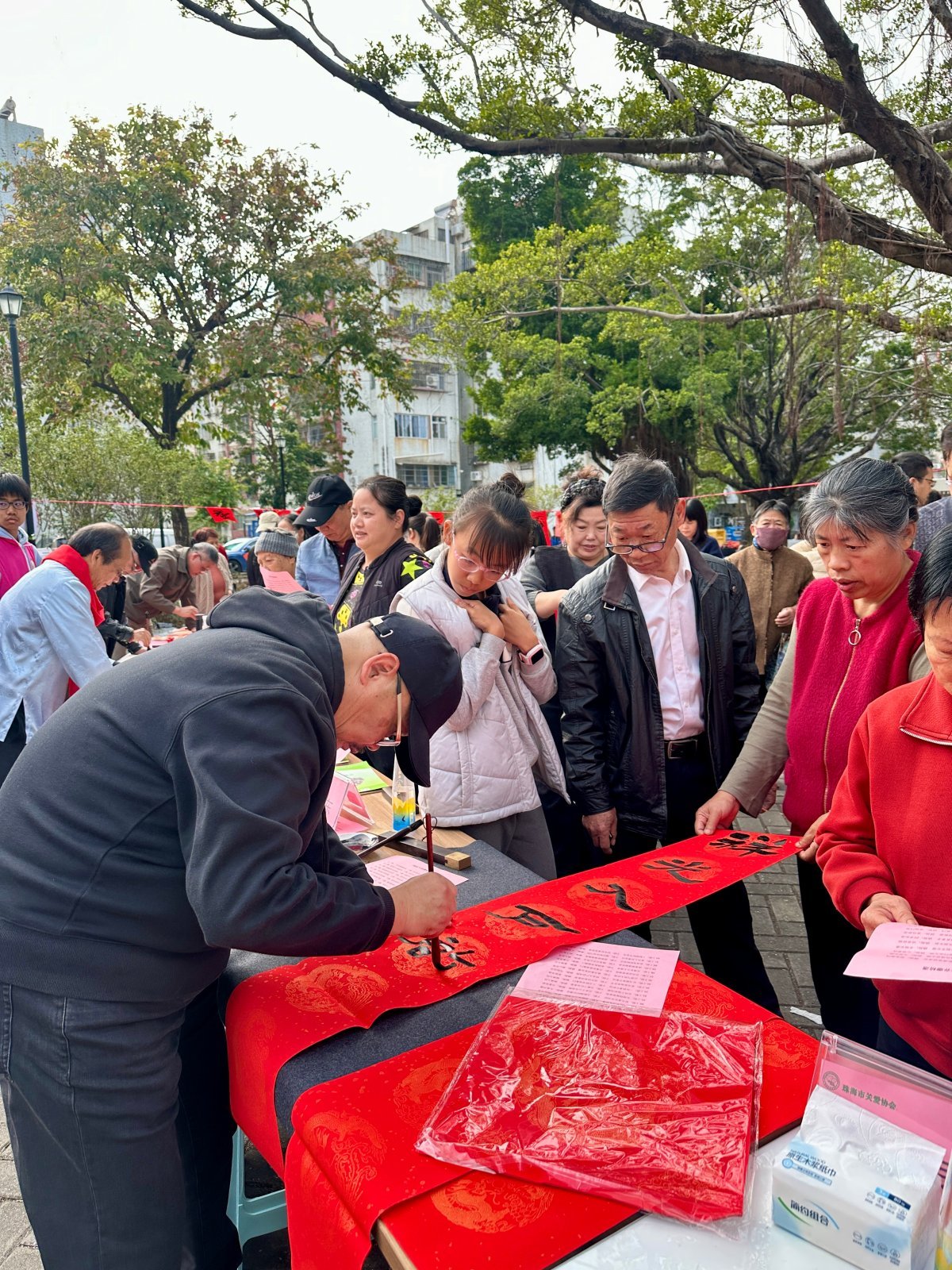 2月1日,珠海市关爱协会联合香洲区翠香街道青竹社区居委会,在青竹社区举办“迎新春 送春联”公益活动,特邀林海涛、陈晓东、梁晖良、林广生、李心友、陆少春等多位珠海书法名家现场挥毫泼墨,为社区居民义务书写春联和“福”字,送上诚挚的新春祝福。