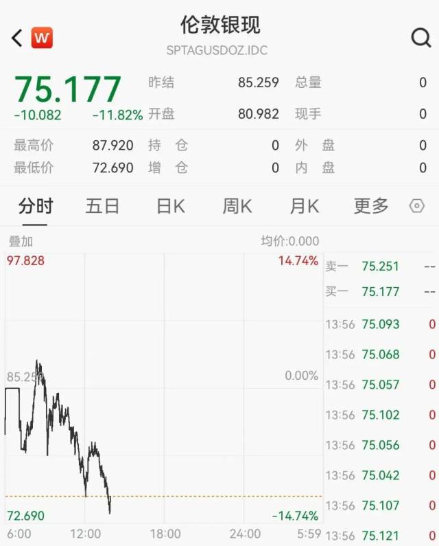 受此影响,国内期货市场上,黄金期货主力合约沪金2604一度跌超15%,触及1016元/克;此外,沪银主力合约跌停。