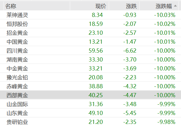 截至2月2日午后,A股黄金股大面积跌停。
