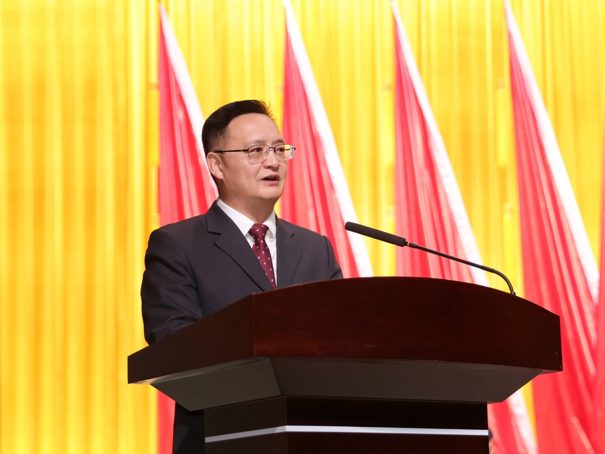陈国政代表政协第五届珠海市金湾区委员会常务委员会,向大会作工作报告。