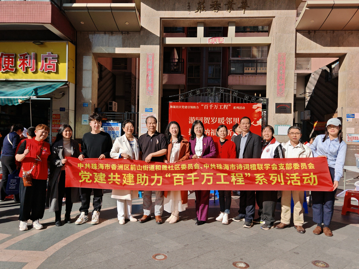 2月5日,前山街道和晟社区党委与珠海市诗词楹联学会党支部携手开展“党建共建助力‘百千万工程’”主题活动,以文化为纽带,为社区居民送上充满年味的新春祝福。