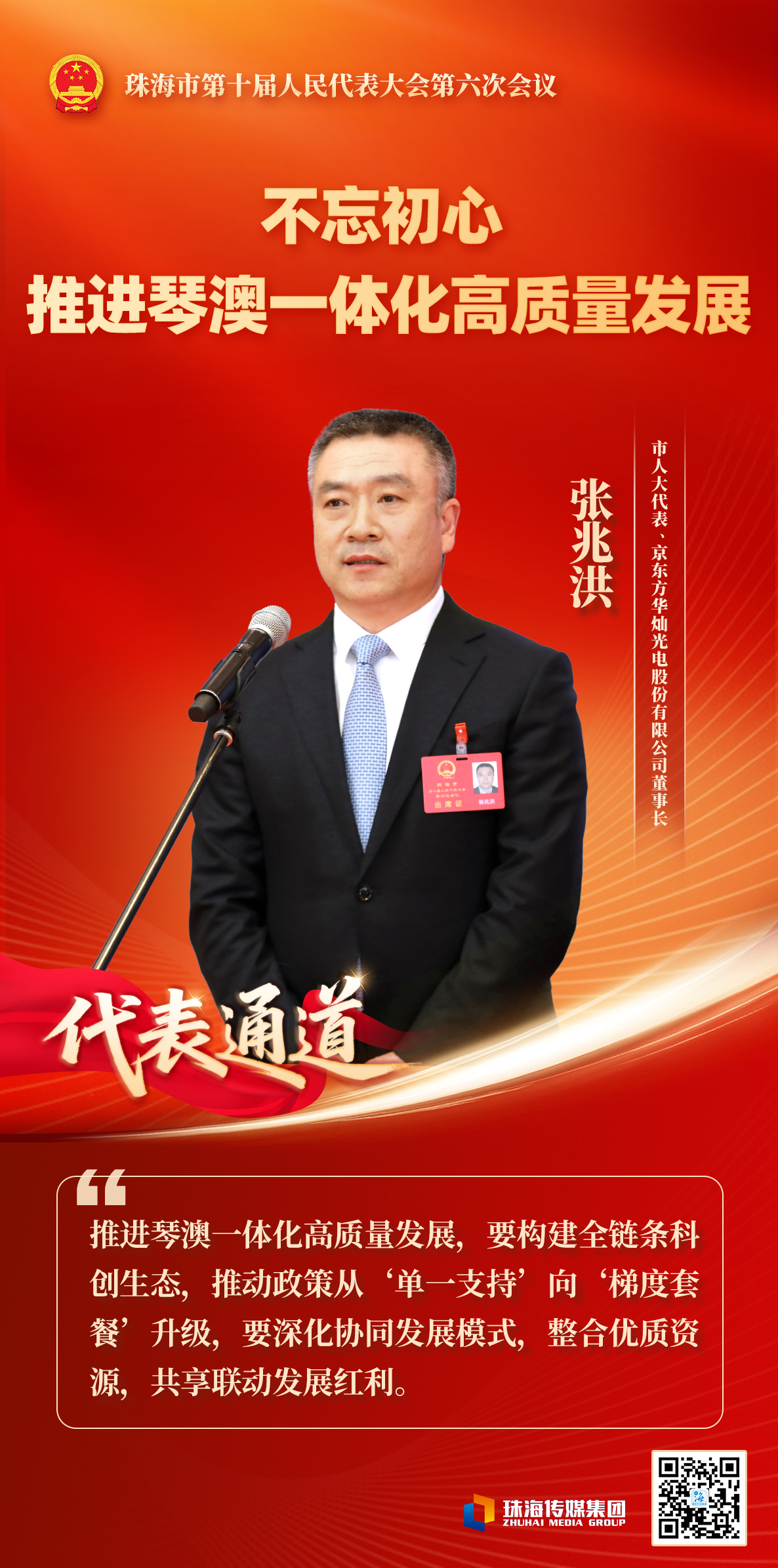 市人大代表张兆洪:不忘初心 推进琴澳一体化高质量发展