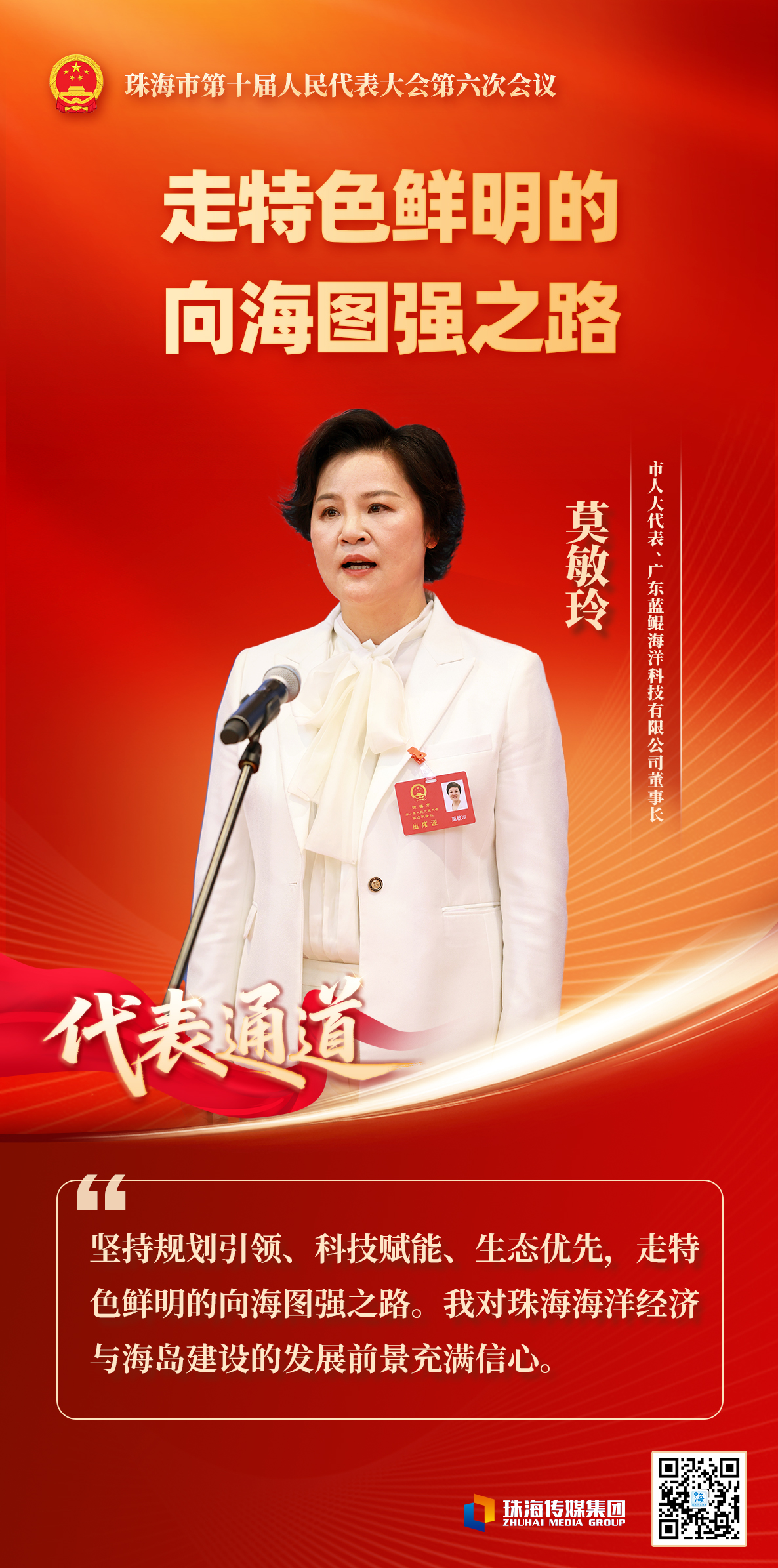 “我相信,只要坚持以规划引领、科技赋能、生态优先,珠海必能走出一条具有特色鲜明的向海图强之路。”莫敏玲信心十足地说。