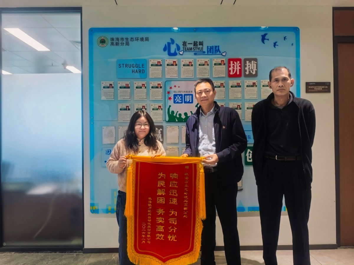 近日,珠海市生态环境局高新分局(以下简称高新分局)收获了一份特别的“礼物”——一封情真意切的感谢信和一面写有“为民解困务实高效响应迅速为企分忧”的锦旗。这份来自珠海欧力配网自动化股份有限公司的认可,不仅是对高新分局执法工作的肯定,更折射出该局将企业诉求作为行动号角、化“难题清单”为“满意答卷”的生动实践。