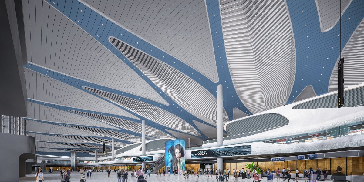 “除了硬件迭代,T2航站楼更兼顾人文与科技属性。”珠海航城机场建设有限公司总经理井长富介绍,候机区配备自助值机、自助托运等智慧系统,采用人脸识别与大数据技术筑牢安全防线,通过绿色设计与节能设施践行生态理念,实现智慧、安全、绿色、人文的有机融合。该航站楼采用T字型构型,主楼搭配东、西、南三条指廊,布局集约高效,不仅缩短了旅客步行距离,更通过T1与T2的连接通道、衔接GTC的便捷动线,实现空铁联运的顺畅衔接。