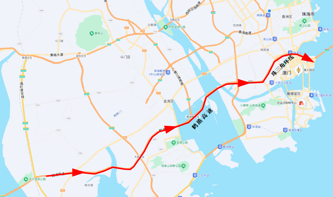 路线一:鹤港高速—珠三角环线—人工岛;
