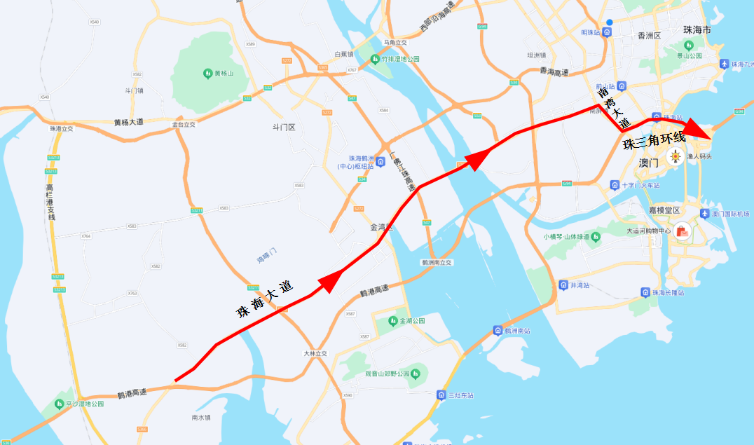 路线一:迎宾南路—九洲大道—珠海大道—南湾大道—珠三角环线—人工岛;