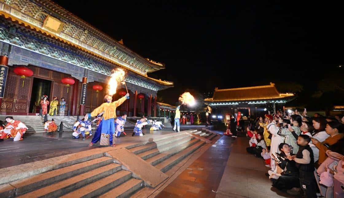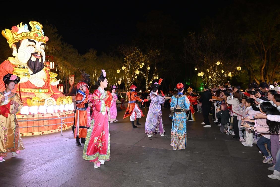 随着夜幕降临,“体验官”抵达珠海圆明新园,换上精致古装“穿越古今”。园内“非遗”彩灯璀璨流映,点亮皇家园林的夜色;正大光明殿前,一场融合现代创意的“迎宾赐福仪式”以热闹的创新英歌舞蹈开场,汇集武术、杂耍、魔方表演,展现皇家仪典的庄重与喜庆;九洲清晏区域,通过剧情对话与互动趣玩,让每位“体验官”从“观礼”到“游园”再到“入戏”。传统与当代在此巧妙交融,一个兼具历史厚度与鲜活年味的珠海形象,在灯火与欢笑中生动呈现。