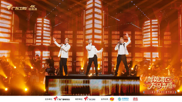 2月15日(年廿八)19:30,《驾势湾区万马奔腾——2026粤港澳大湾区春节晚会》将在广东卫视4K超高清频道及全网多平台同步播出。
