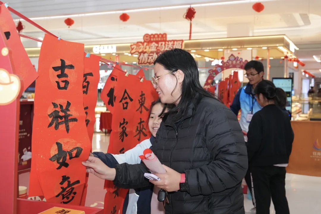 现场,三位书法家挥毫泼墨,书写出一副副寓意吉祥的春联和喜庆的“福”字贴,同时,活动提供“个性化选题”服务,不少居民“有备而来”,当场定制专属春联内容。充满年味的活动激发了居民的参与热情,其中还吸引了港澳同胞现场加入。来自香港的刘先生,“第一次参加这样的活动,感觉特别有年味。现在香港已经很少见到手写春联了,看着老师一笔一划认真书写,感受到了中华书法的独特魅力。”