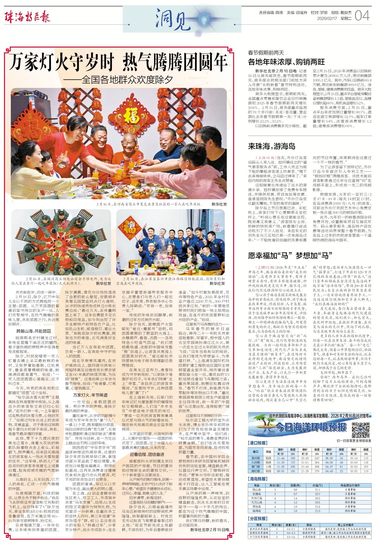 2月16日,除夕,亿万中华儿女以不同的方式拥抱同一个主题:团圆。从万家团圆的餐桌到坚守岗位的生产一线,人们欢聚相守,在热气腾腾的年味儿里,共赴团圆之约,共话美好期许。