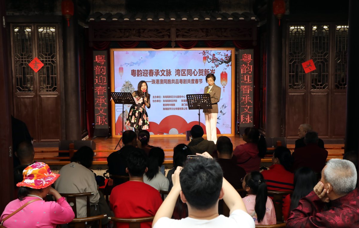 新春添雅韵,湾区共欢腾。2月17日,农历丙午马年正月初一,在承载着粤剧泰斗唐涤生、名伶唐雪卿故里文脉的唐家古镇,一场以“粤韵迎春承文脉 湾区同心贺新岁”为主题的“粤剧之旅”活动温情启幕。来自香港、澳门的返乡游子、慕名而来的游客与本地街坊邻里欢聚一堂,以丝竹为媒、戏曲为桥,共品非遗雅韵,同叙湾区亲情,在铿锵锣鼓中续写“珠港澳一起过大年”的温暖篇章。