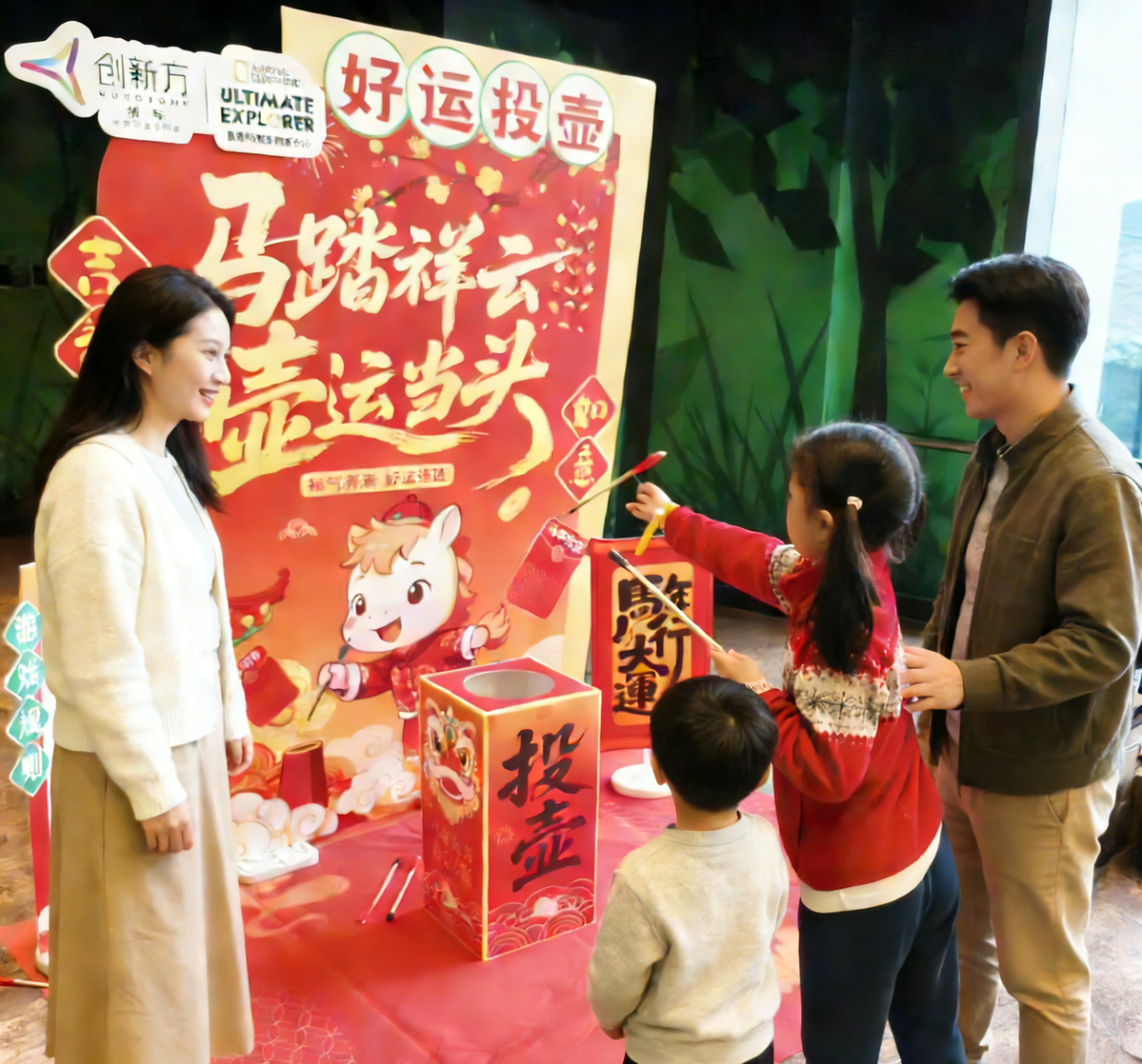 横琴国家地理探险家中心则以马年主题活动吸引游客,投壶、猜灯谜、动物手工DIY等活动趣味十足,寓教于乐,属马、姓马游客还可领取专属纪念品。丰富的亲子节目,叠加创新方商场内集中的网红打卡餐馆,同样吸引大批游客的到来。