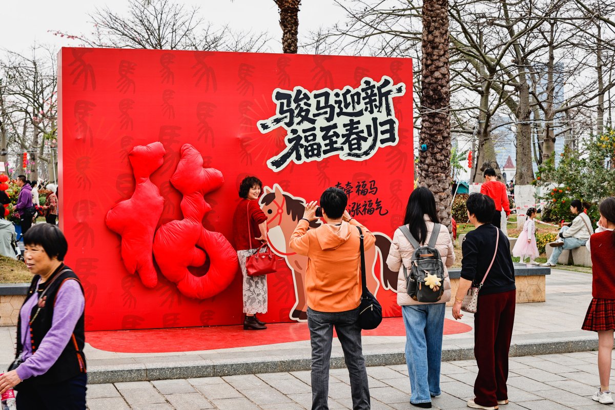 与此同时,花海长廊一带还设置了年味十足的打卡装置与趣味手作体验区,将自然观赏与文化互动深度融合,极大丰富了市民游客的游玩体验。