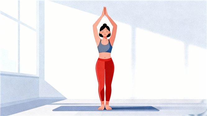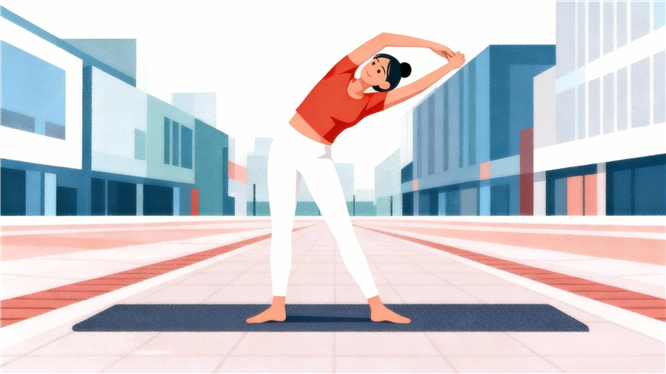 2.侧向伸展:站立位,双脚与肩同宽,双手交叉举过头顶;向左侧缓慢弯腰,直到右侧腰部有拉伸感(不要扭转身体),保持15-20秒,回到中立位后换侧重复,每侧2-3组。