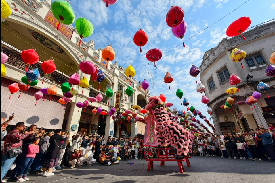 精彩接续不断。莲江村非遗巡游亮点纷呈。鱼灯、虾灯整齐列队、灵动喜庆,承载着年年有余的美好期许。巡游队伍里火龙舞动,踏歌而来。不少市民游客自发加入,近距离感受斗门非遗魅力。
