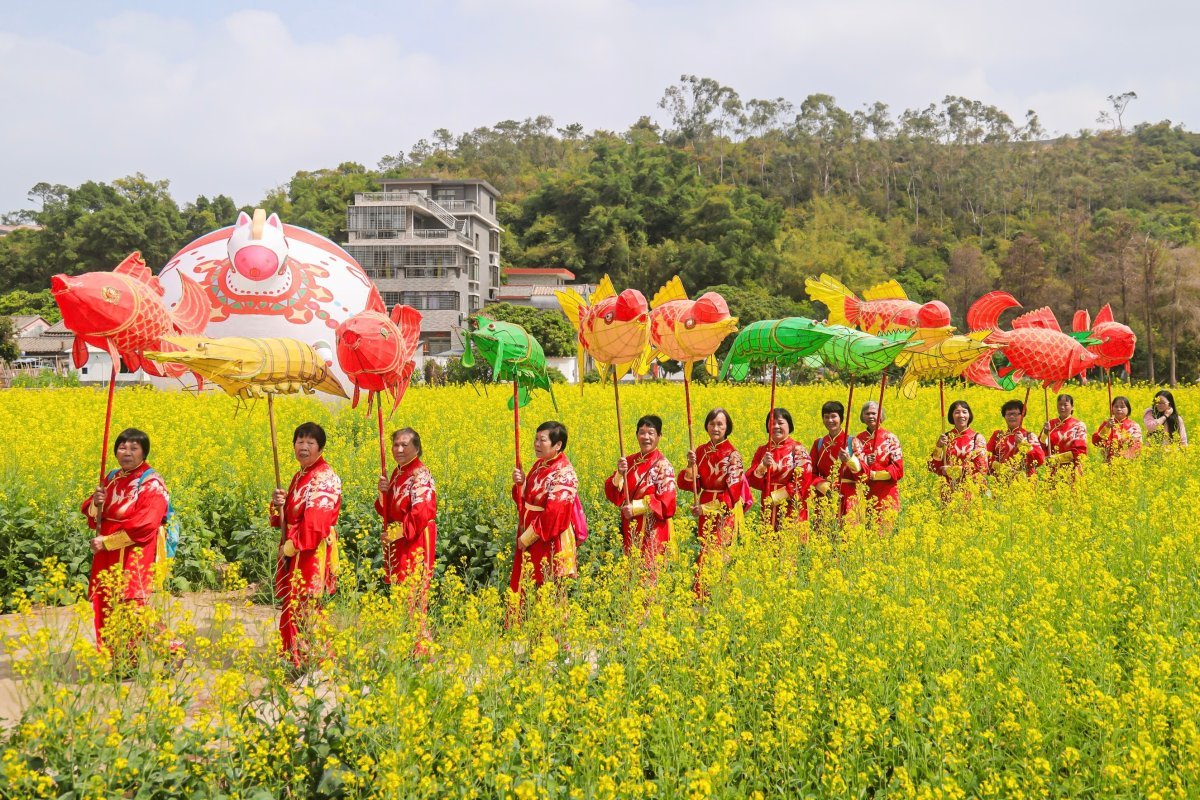 春意盎然,年味十足!2月21日-22日,斗门莲洲镇“花开水乡·鱼戏莲洲”新春系列活动再度升级!观花田巡游、赏汉服演绎、接财神送福、玩“摸鱼大战”……市民游客、港澳乡亲在斗门欢喜过大年。