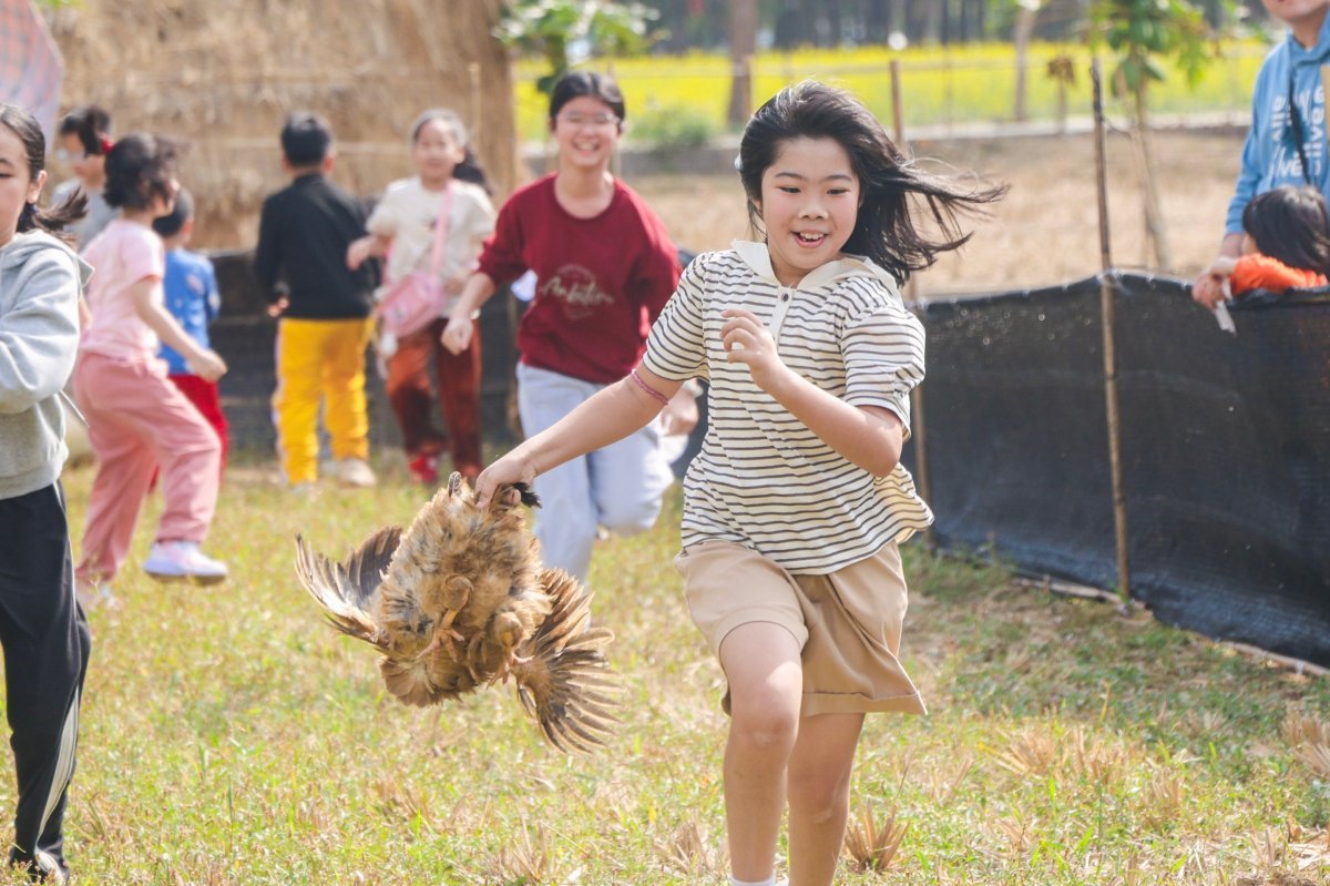 当日下午2时,别开生面的“乡村运动会”闹腾开赛,抓鸡套鸭——城市里难得一见的农家乐趣,在这里化作亲子间的默契考验,孩子们你追我赶,“活捉”年味,收获满满快乐与成就感。