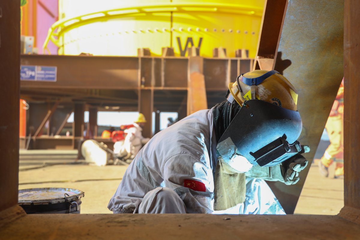 海洋石油工程股份有限公司珠海深水装备制造基地内,英奇角、涠洲6-13等多个重磅项目同步推进,焊枪之下,火花四溅;吊臂起落之间,巨型装备精准就位。春节期间,近千名建设者穿梭于这片“钢铁丛林”,机器的轰鸣声此起彼伏,与新春的步履同频共振。